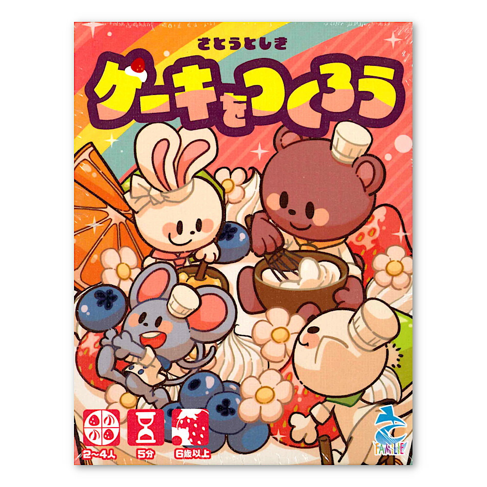 ケーキ作りがお好きなお子さん、動物さんがお好きなお子さん、買ってすぐに遊べるゲームを探している方に是非遊んでいただきたいボードゲーム!