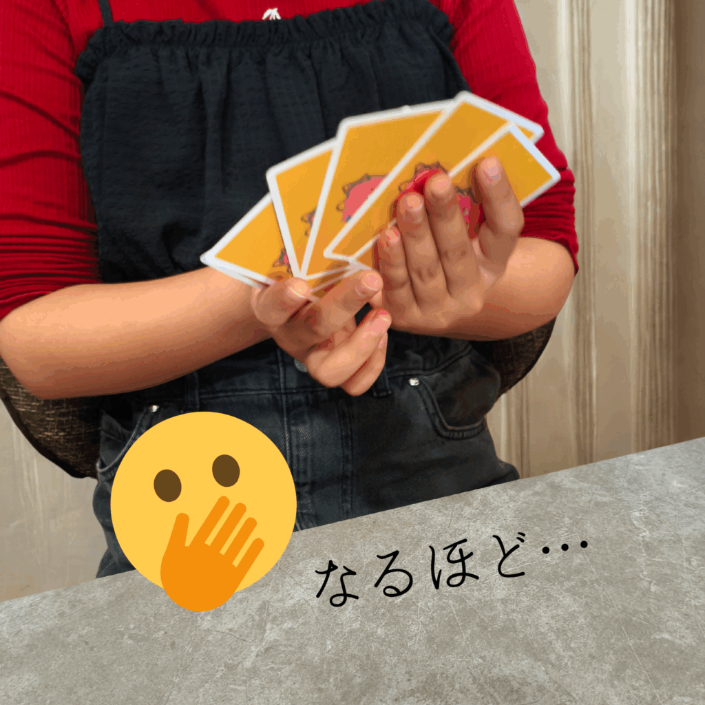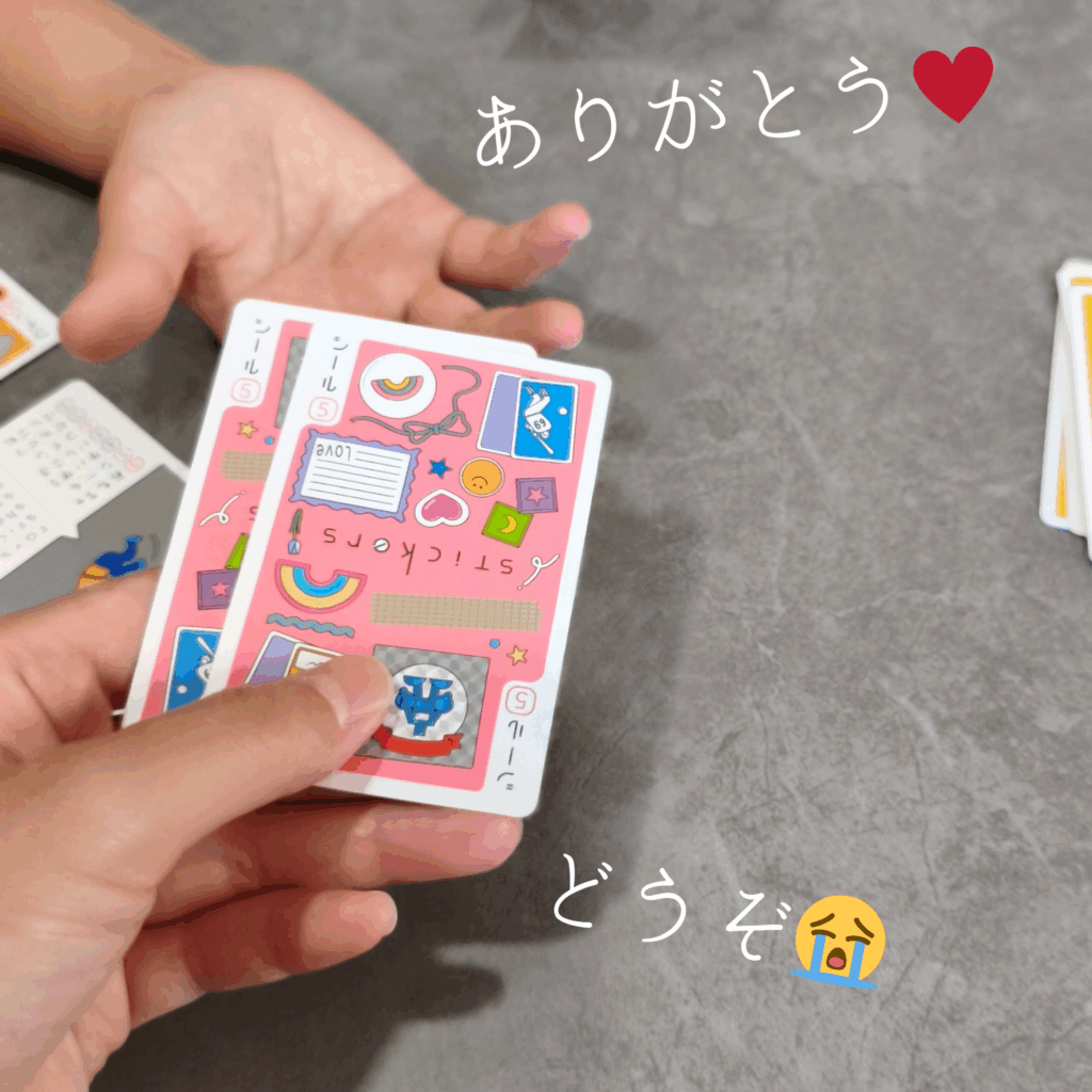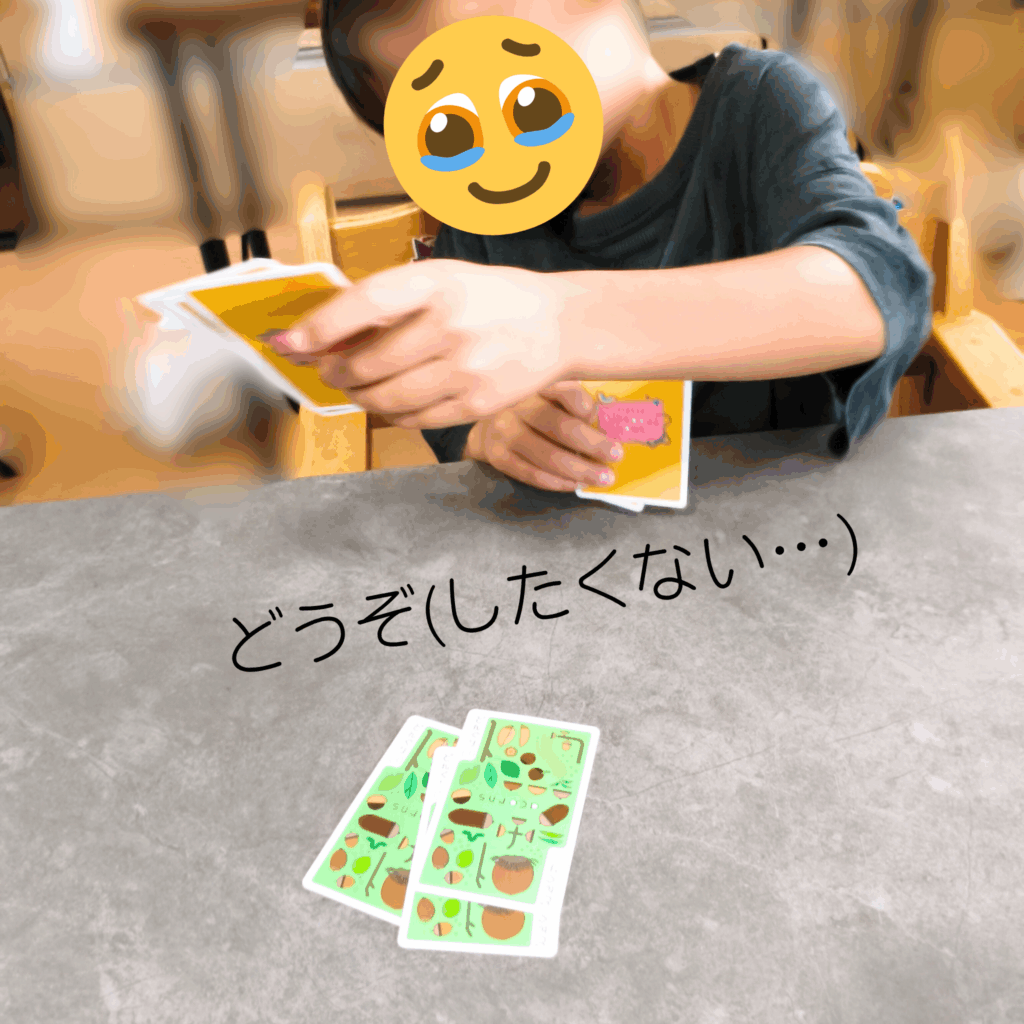 保育園年長児の息子とは初めて遊んでみましたが、初回からルールを理解し、上手に得点に繋げることができていました。誰かにおねだりされて渡さなければいけない時の、あの「ぐぬぬ顔」が忘れられません(笑)。