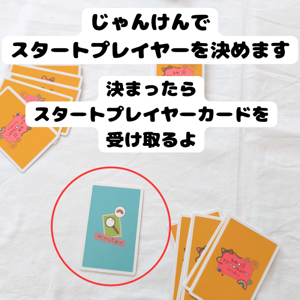 - じゃんけんでスタートプレイヤーを決め、スタートプレイヤーカードを前に置く。