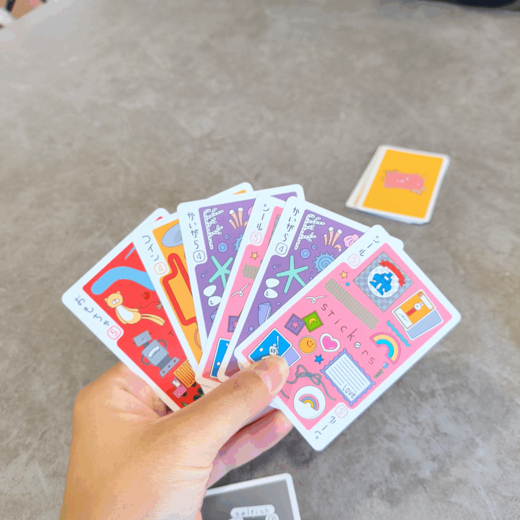 山札や得点化したカードを置けるスペースさえあれば遊べるところも最高!省スペースで遊べてお片付けも簡単なところがめっちゃいい!!