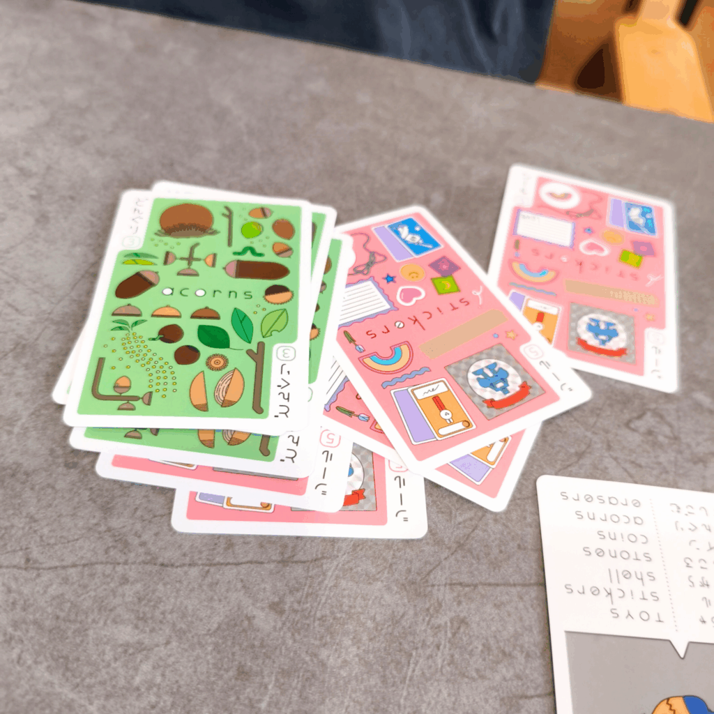 そんな幼い頃の「おもちゃ」や「石ころ」「どんぐり」などの宝物を集めて得点にしていくカードゲーム♪自分の幼い頃の宝物を思い出しながら、ほっこりした気持ちになりました♡