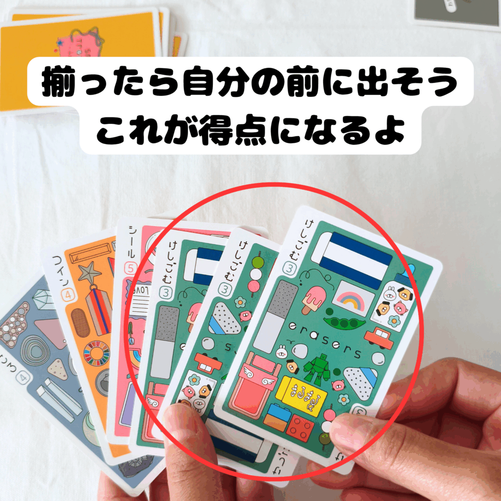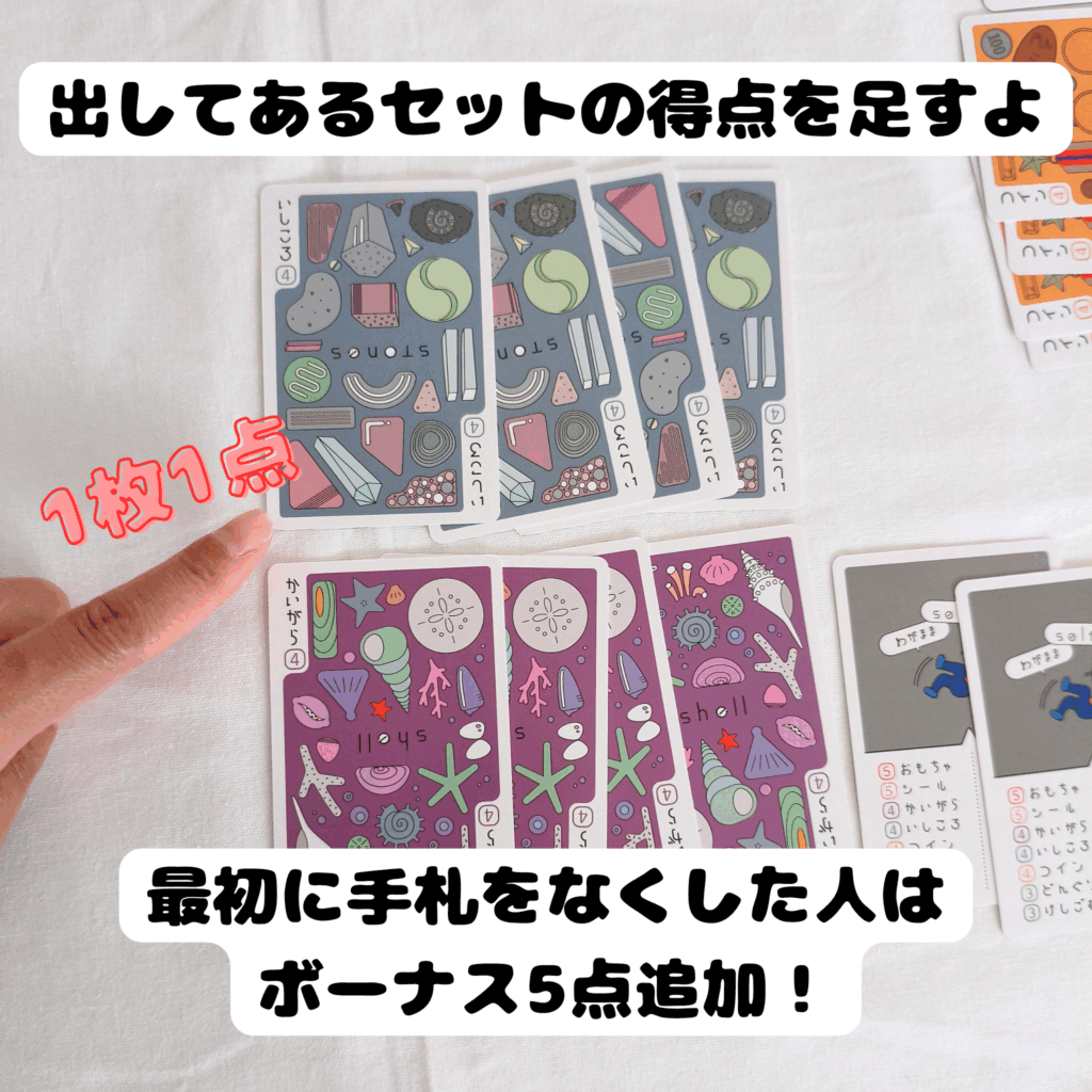 - これで枚数が揃ったら、同じように表向きに出して得点にすることができる。
