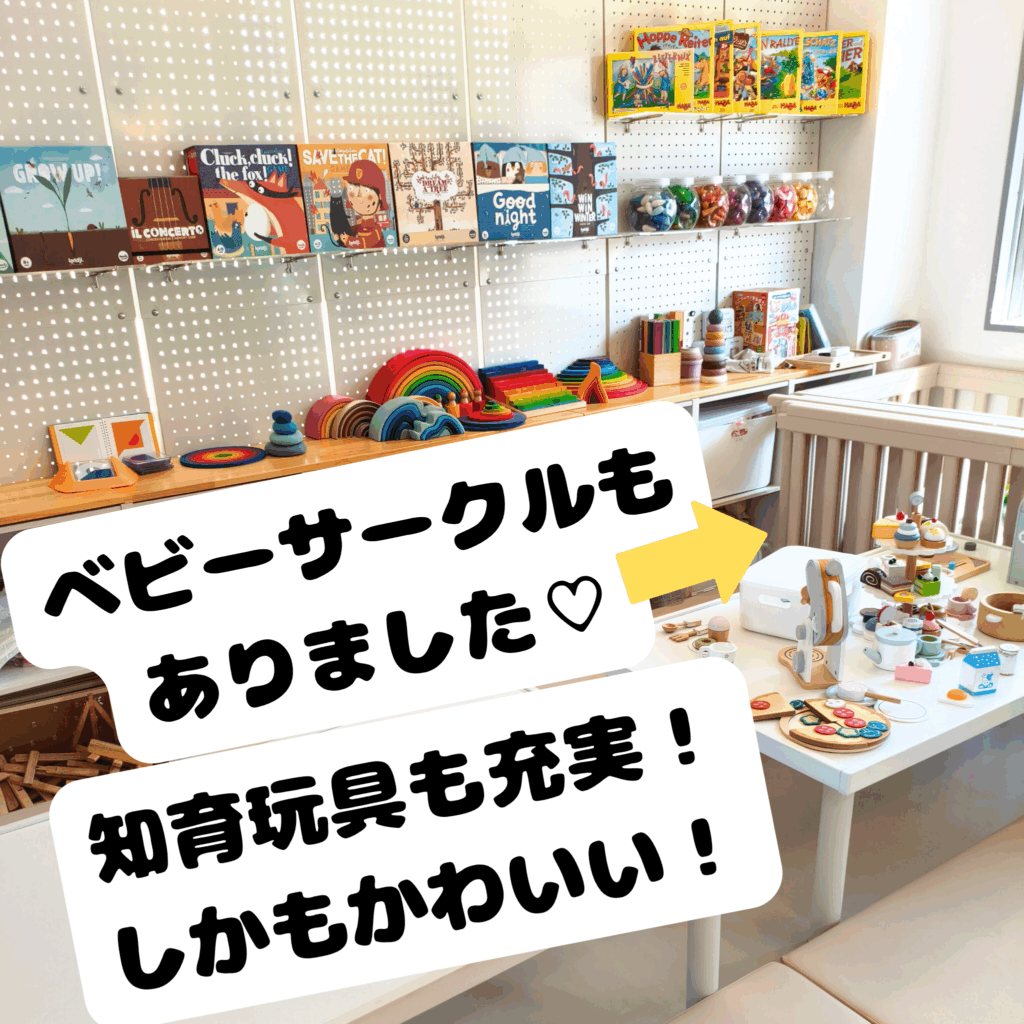 土足禁止の店内にベビーサークルもあり、赤ちゃん~未就学児のお子さんと一緒に過ごす環境が整っていたと思います。感染症流行以降、私も清潔さに敏感になっていましたが、そんな私も安心できるスペースでした♡