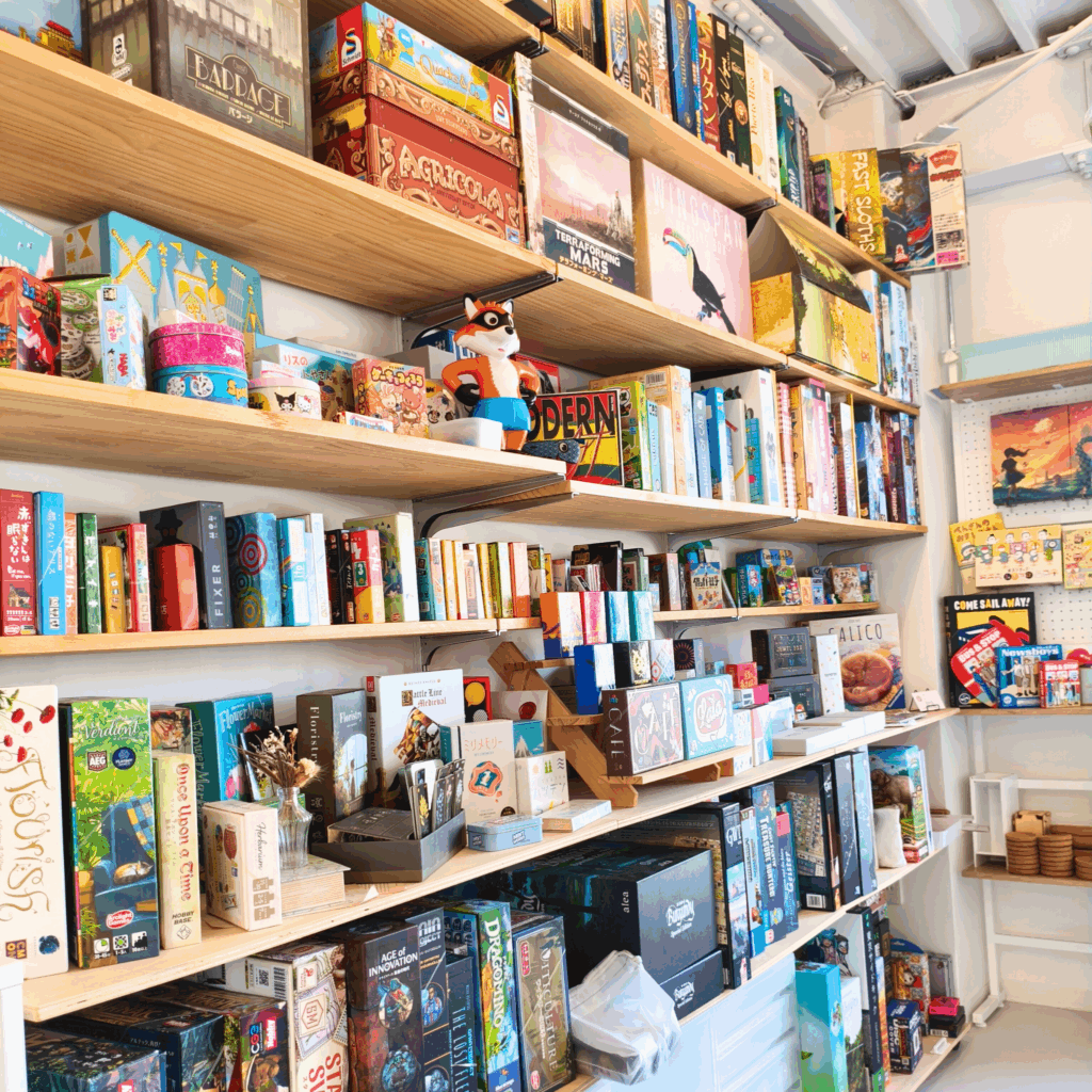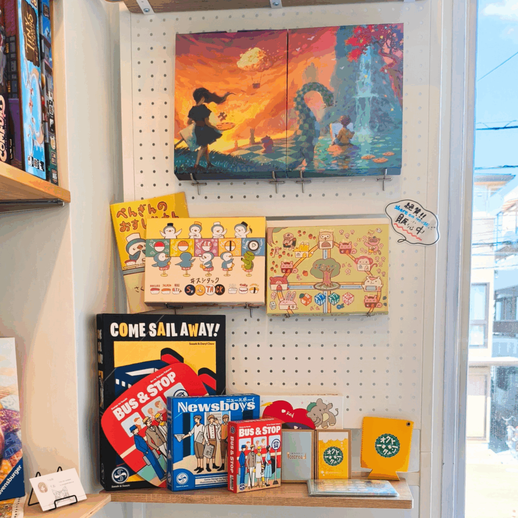ボードゲームカフェなので、店内にはたくさんのボードゲームも陳列されています。