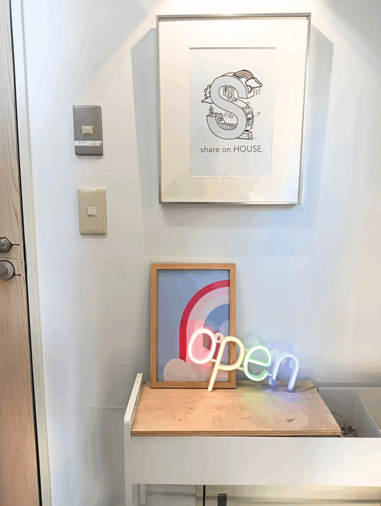 皆様がこの空間で考え、ひらめき、楽しんだ想いが”虹のカケラ”となります。集まったかけらで出来た”虹”を空に放つことが share on HOUSE. の役目。