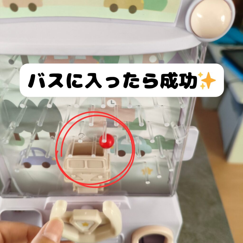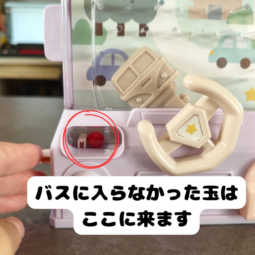 ただ1人で「ボールの補充〜バス操作」まで全てをこなし、ボールの落ちるタイミングに合わせてバスを動かすのは大変そうでした。最終的に『ボールを1個ずつ入れてバスに入るかチャレンジする』なら1人で遊ぶことができましたが、息子的にはじゃんじゃん落ちてくるボールをバスに入れたかったみたい。今回は娘がボール入れを担当してくれたので2人で楽しめていました♪