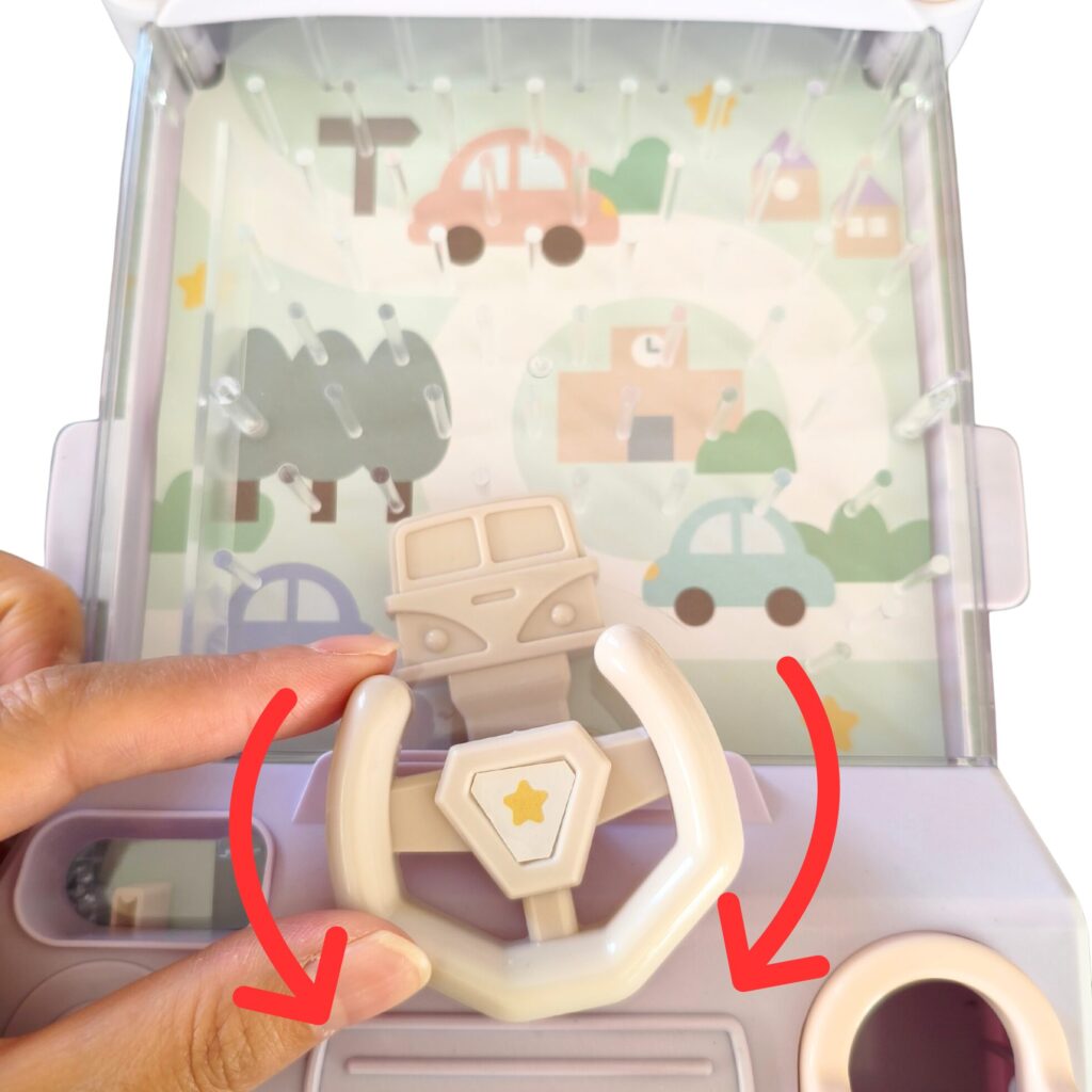 ボールを入れたりレバーを弾いたりすることで、指先の運動にもなりそうです♡さらにボールが落ちるところを予想してハンドルを動かすので集中力も育ちそうです!