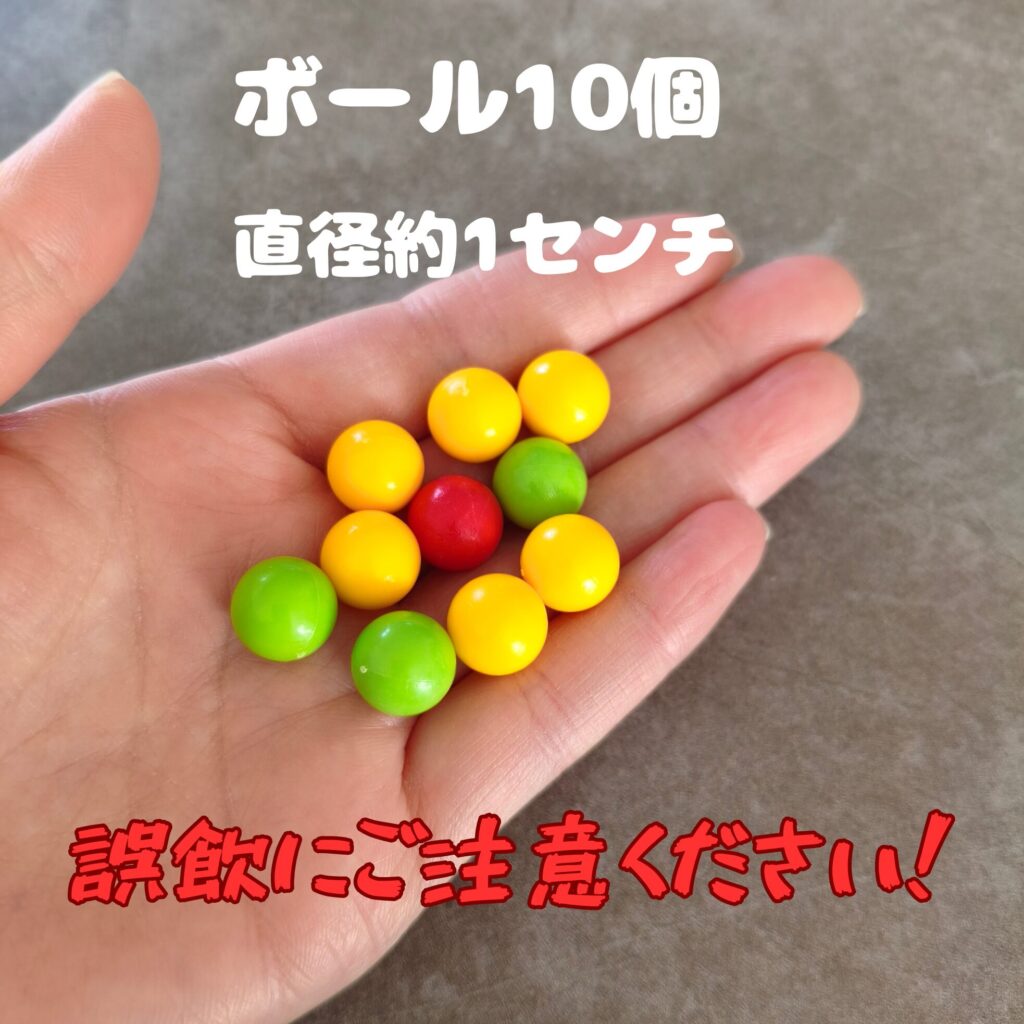 ボールは軽いプラスチック製。カラーは3色入っていましたがバラバラだったので、封入カラーはランダムかもしれません。