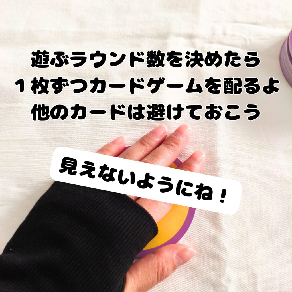 • 各プレイヤーに1枚ずつ、裏向きにしてカードを配る。
