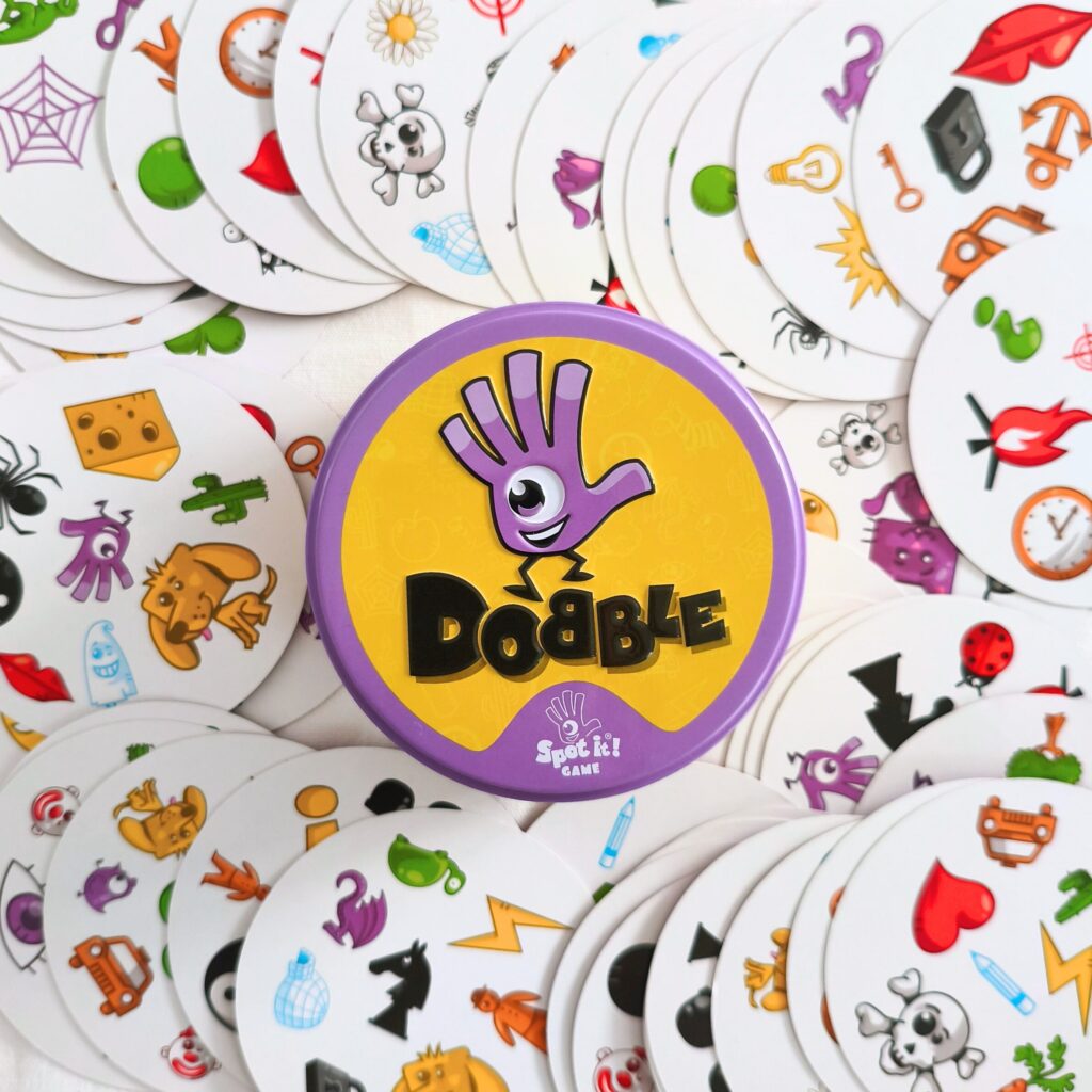 一番オーソドックスで定番のドブル!マークに固有の名前があるものではないので、子どもの直感で答えるマークの名前にクスっとしちゃいます♪ポップなデザインで鮮やかな色味も分かりやすくて好き♡