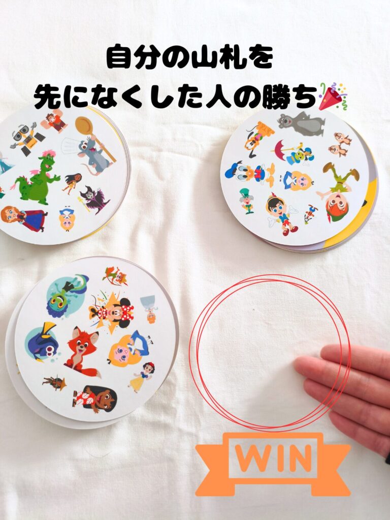 • これを、誰か一人の山札がなくなるまで続け、最初に山札をなくした人の勝ち。
