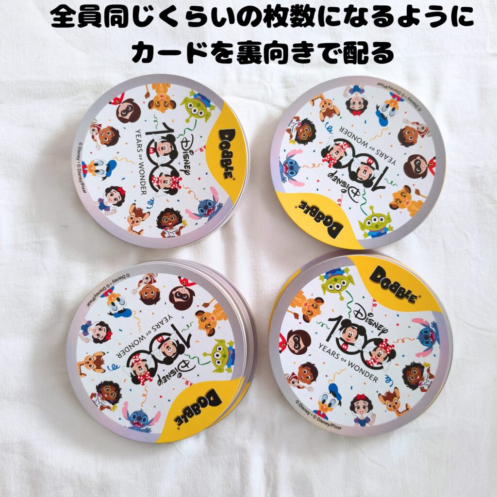 • カードを全員に、できるだけ同じ枚数になるように裏向きのまま配り、各自の山札にする。