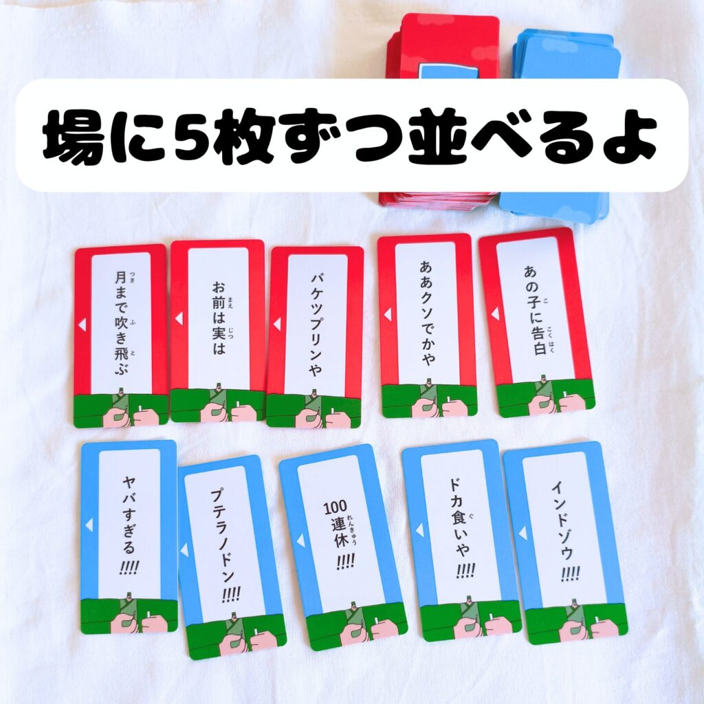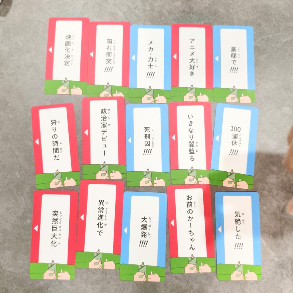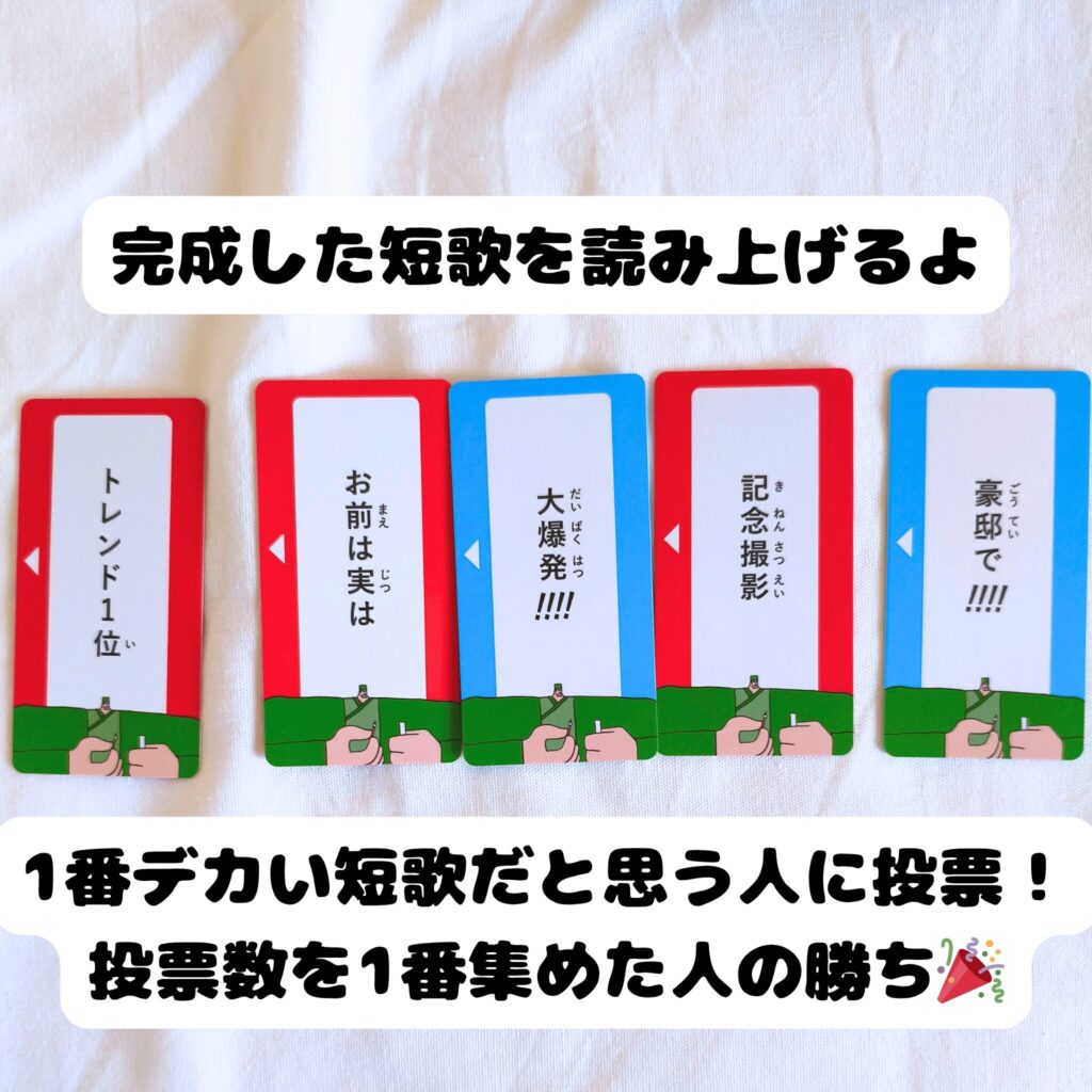 ポーカーみたいにカードを交換して「5・7・5・7・7」の短歌を完成させます。この作った短歌がセンスあるデカい人の勝ち!…え?(笑)