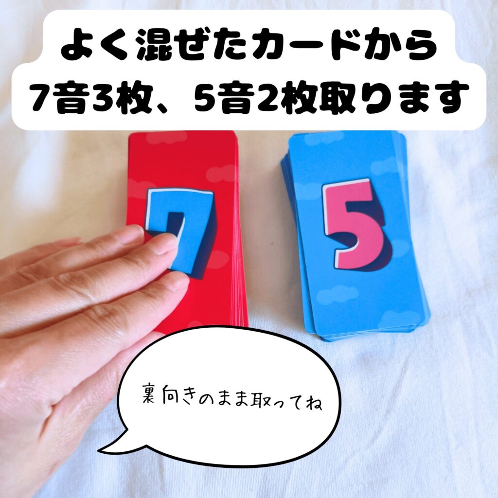- 全員、7音カードは3枚、5音カードは2枚取り、手札にする。